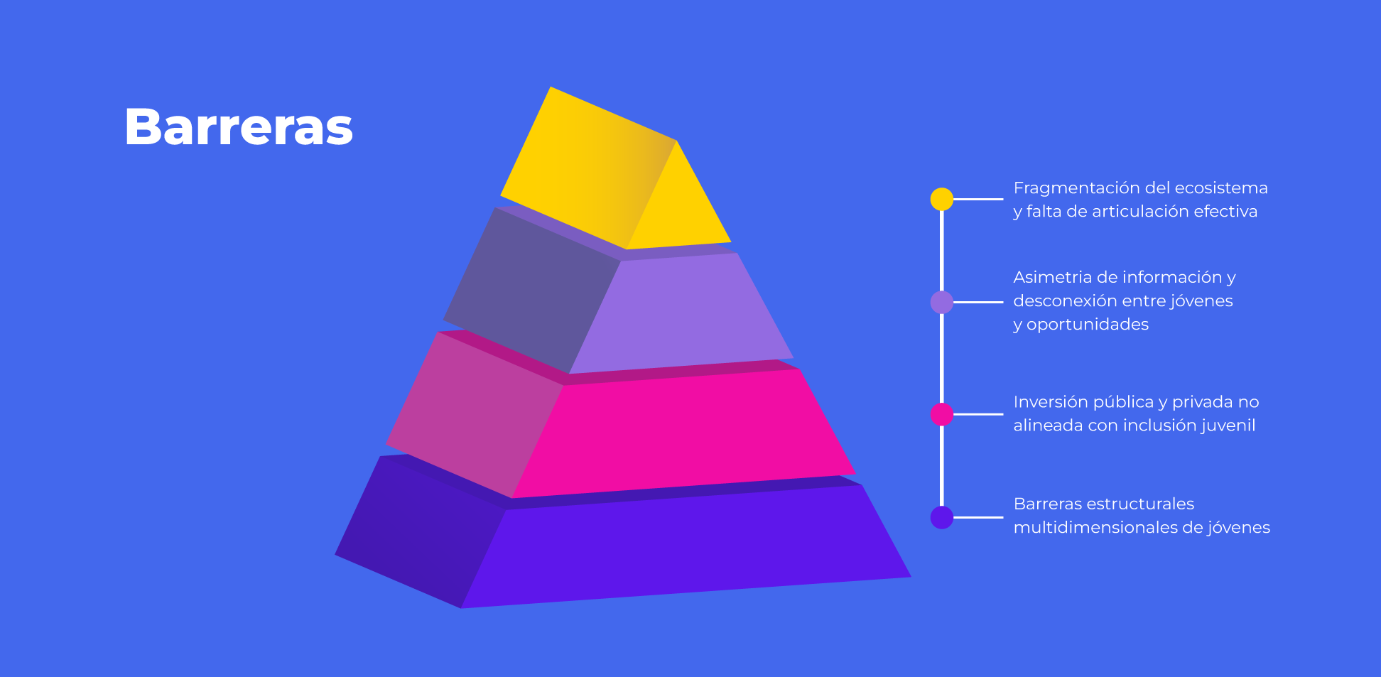 Consolidar una red de articulación que impulse cambios sistémicos en Bogotá, donde jóvenes, organizaciones públicas, privadas y sociales trabajan en sinergia para desmantelar barreras e injusticias estructurales y crear oportunidades reales para las y los Jóvenes con potencial en la ciudad.